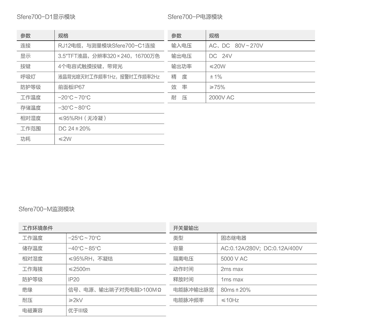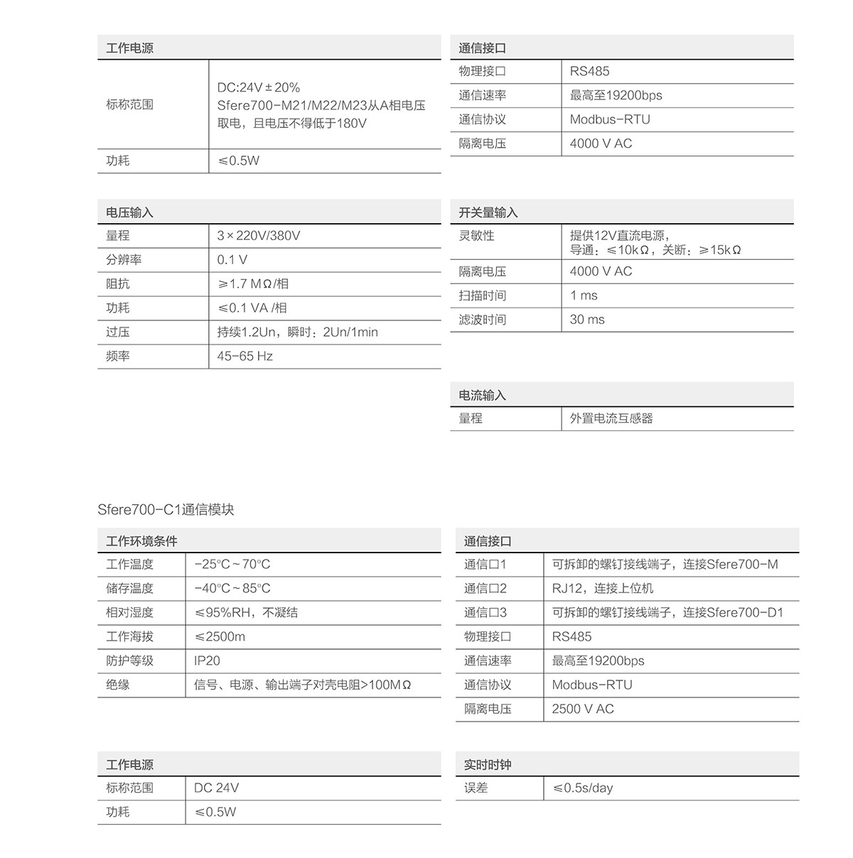 Sfere700監測單元可實現低壓配電系統電力參數的實時測量、電能計量、電能質量分析、狀態監測及越限報警等功能,Sfere700包含1個顯示模塊Sfere700-D1、一個通信模Sfere700-C1、一個電源模塊Sfere700-P、最多支持32個監測模塊Sfere700-M,以及配套的電流互感器等。可實現最多32個三相回路電力參數的測量。配備超大的彩色液晶顯示屏和觸模式按鍵,使用簡易,其體積緊湊,安裝便捷,是多回路電力監測的理想方案。