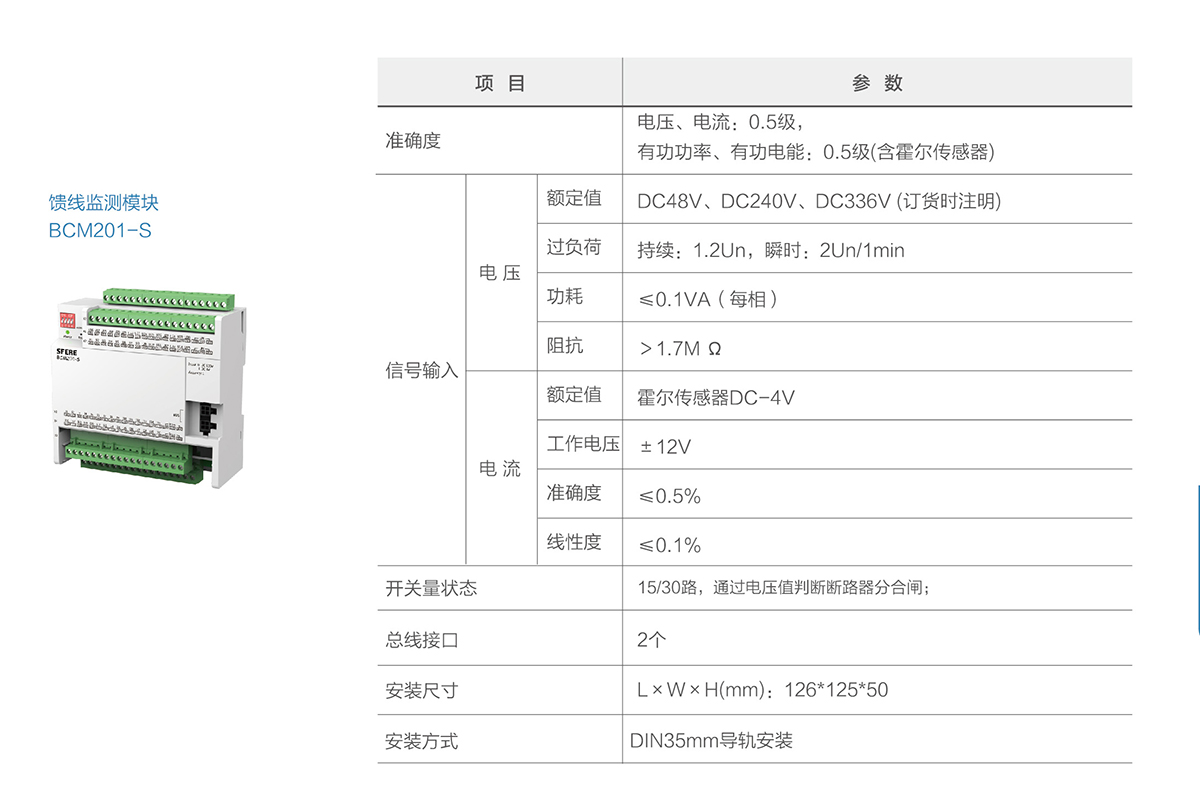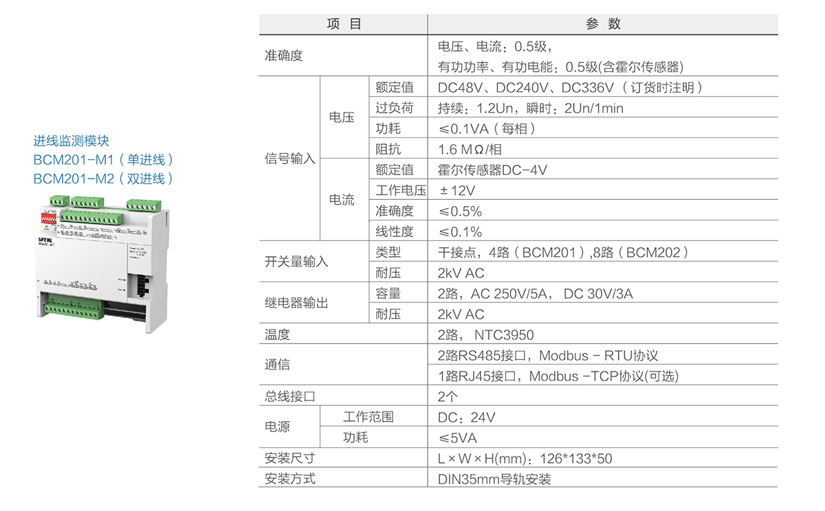 BCM201系列為直流測量。BCM系列精密配電監(jiān)測單元用于監(jiān)測數據中心交直流列頭柜的電力運行參數,測量進線和饋線支路的電壓、電流、電能、諧波等電參量,及所有斷路器開關狀態(tài),具有跳閘報警功能。各輸出回路具有兩級用戶可設置的過流報警,預防潛在的電源故障。產品配置7寸彩色液晶觸摸屏,并提供以太網通信接口,方便接入其他系統。