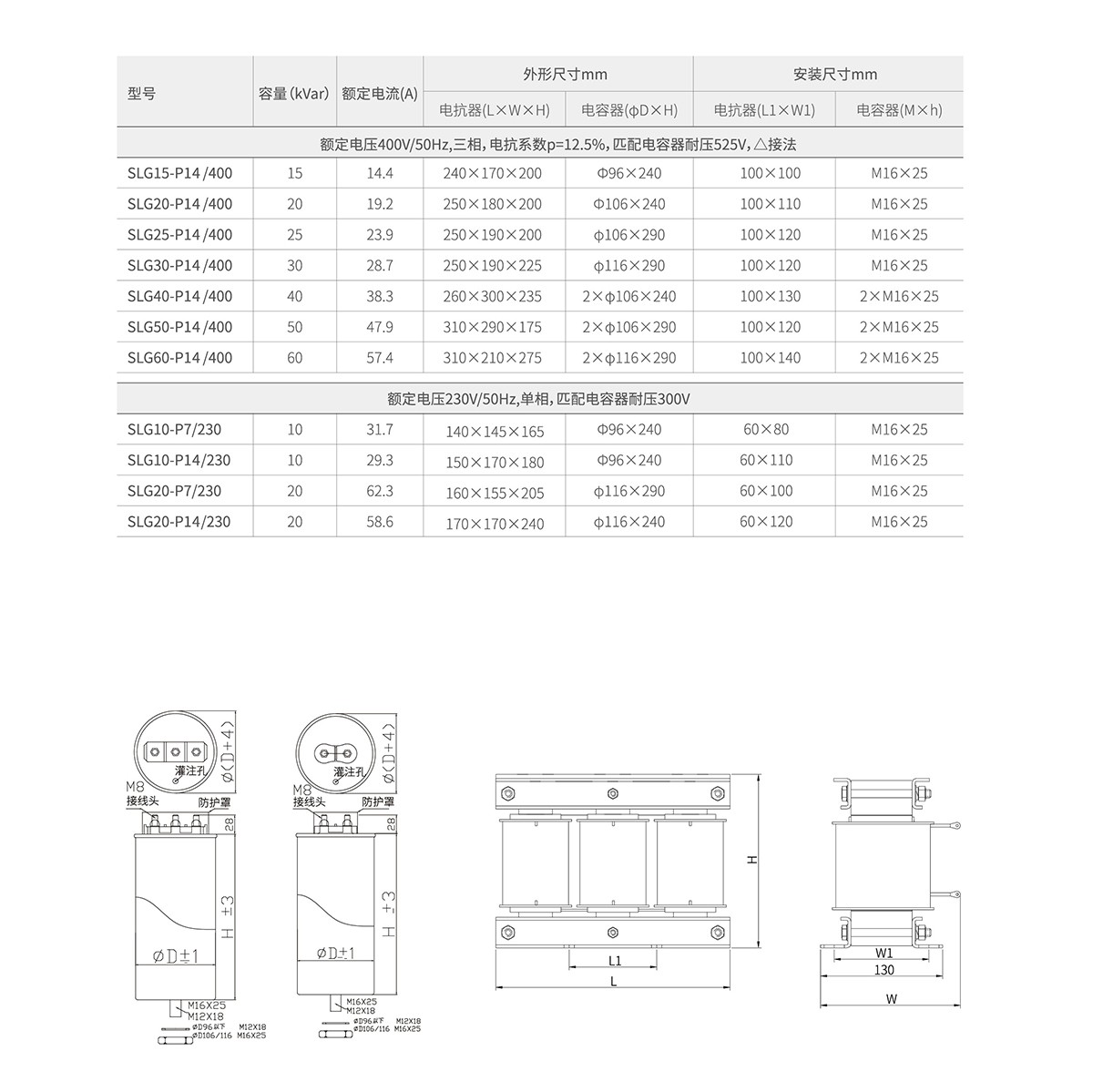 SLG系列消諧式無功補償組件是將一定電抗系數的濾波電抗器和一定容量的電容器進行適當比例的配置,組成濾波回路,從而達到無功補償與諧波治理的目的。