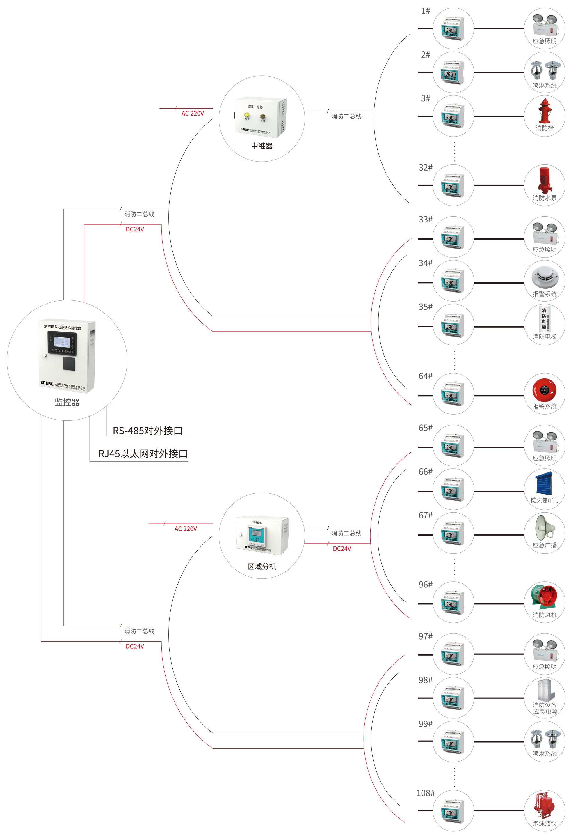 ? 1路RS485通信接口,標準MODBUS-RTU協(xié)議,1路消防二總線通信接口;