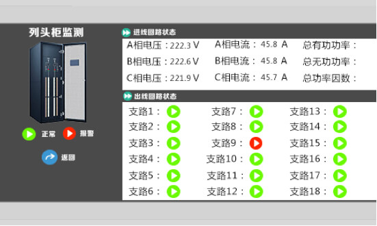 精密列頭柜為數據中心能源末端服務器設備等提供安全可靠的電源,精密配電單元為數據中心能源監測系統提供高精度測量數據,通過人機界面,實時反映電能質量數據。并通過數字通信上傳至后臺動環監控系統,從而實現對整個配電系統的實時監控。同時,精密配電單元提供電能計量功能,可實現配電及機架精細的能效分析,為配電網絡和服務器運行能效優化調節提供依據,從而達到節能降耗的目的。
