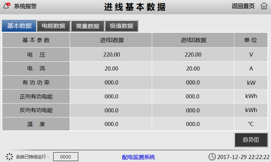 實時監測進線回路基本數據,包括電壓、電流、功率、電能數據。