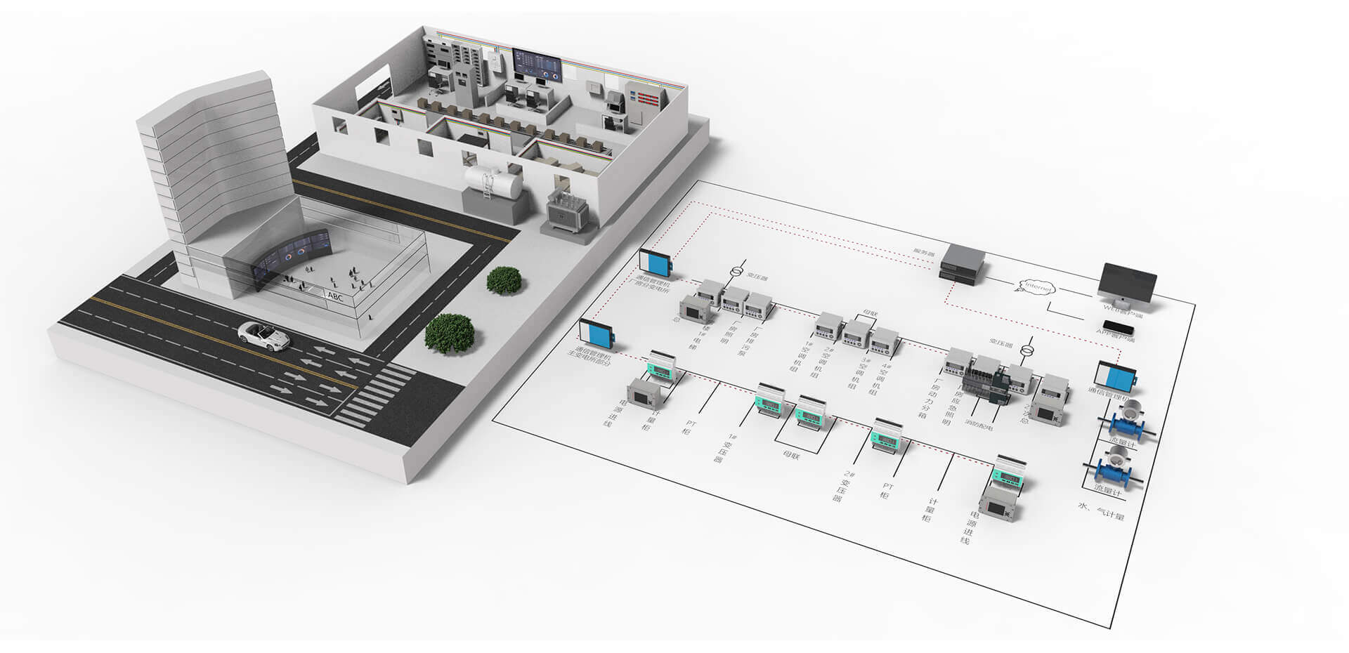 網絡通訊設備,包括通訊管理機、交換機等,負責現場數據收集、數據緩存、數據主動上傳,支持局域網、公網、3G/4G無線網絡及GPRS無線的傳輸方式。