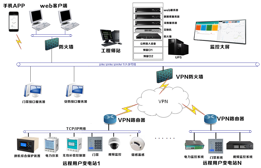 可滿足客戶多設(shè)備接入(包括微機(jī)綜合保護(hù)、電力儀表、無(wú)功補(bǔ)償控制器、變壓器溫控儀、門禁系統(tǒng)、安防系統(tǒng)等),內(nèi)置豐富協(xié)議可滿足常用Modbus-RTU、DLT645、IEC61850、IEC101/102/103/104等,如客戶有特殊協(xié)議可開(kāi)發(fā)定制。