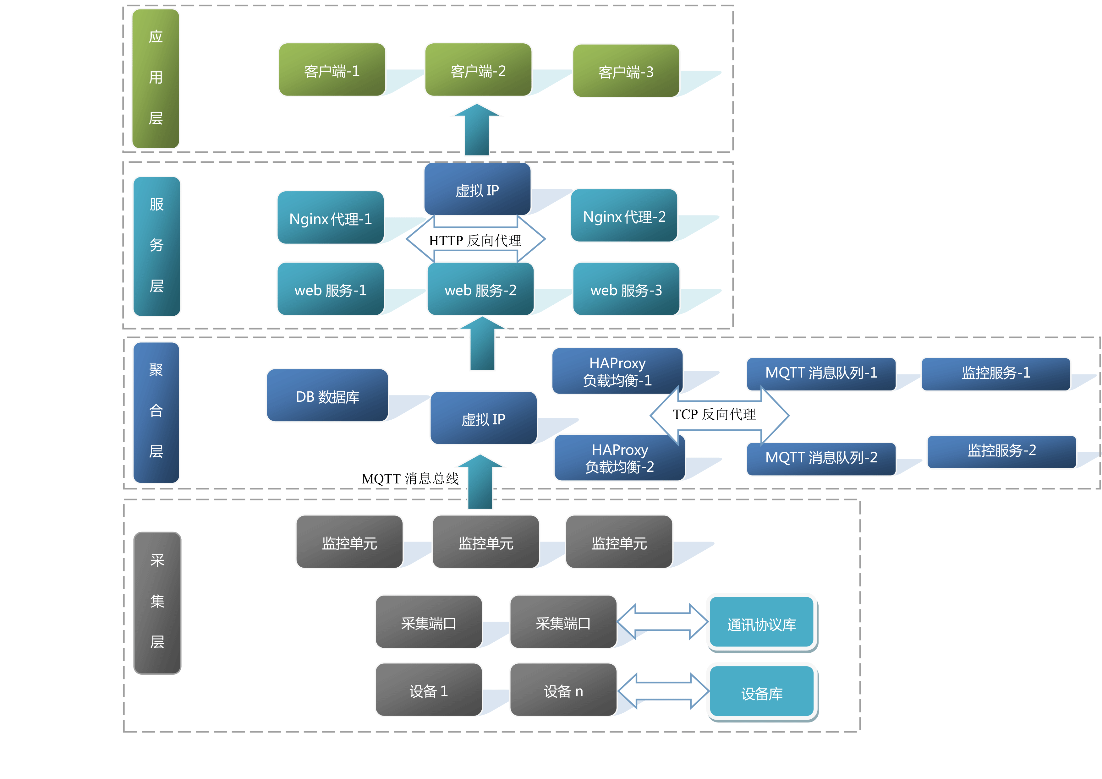 根據(jù)客戶的實(shí)際要求按需部署,隨用戶接入的項(xiàng)目數(shù)及監(jiān)控點(diǎn)數(shù)動(dòng)態(tài)增加采集服務(wù)器、數(shù)據(jù)庫(kù)服務(wù)器和應(yīng)用服務(wù)器保證計(jì)算能力。