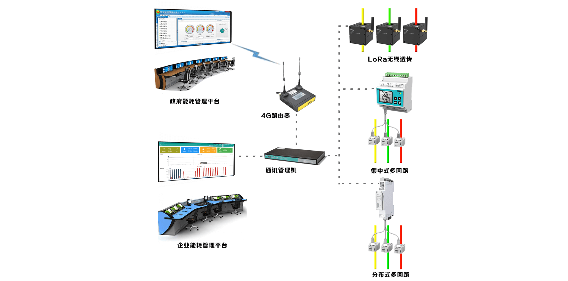 企業內部需要對電能利用進行精細化的管理,同時政府部門對公共建筑、高校、醫院、工業等行業制定的相關的能源管理規定。比如《公共建筑能耗監測系統技術規程》要求能耗監測實現將建筑分戶能耗和分項能耗數據上傳至轄區管理區域的數據中心,因此能耗監測點可設置在終端配電箱其特點主要是回路多且相對分布散,組網比較困難。