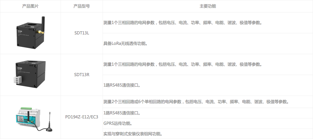 能耗系統改造首先要安裝能耗計量設備,能耗監測點包括高壓出線側或低壓進線側及重點負載設備或高能耗設備,由于現場普遍存在不能停電、停水及成本高等問題是影響項目改造實施的主要因素,穿刺式安裝儀表可解決上述問題,具有安裝便捷、功能完善、性價比高等優點。集中式多回路儀表可應用于低壓配電柜,具有節約空間,成本低等優點。分布式多回路儀表可應用于配電箱或配電柜內具有結構緊湊,按需配置等優點。